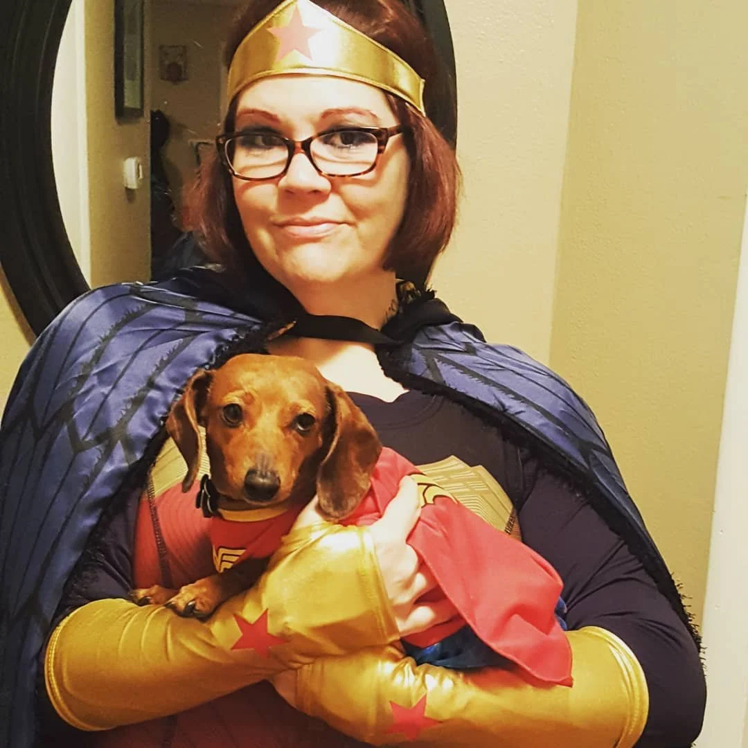Sadie and I in our Wonder Woman costumes.